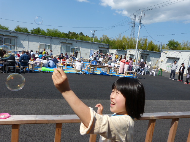 ・サッカー・縄跳び等で、仮設住宅に住む皆様と交流させて頂く。