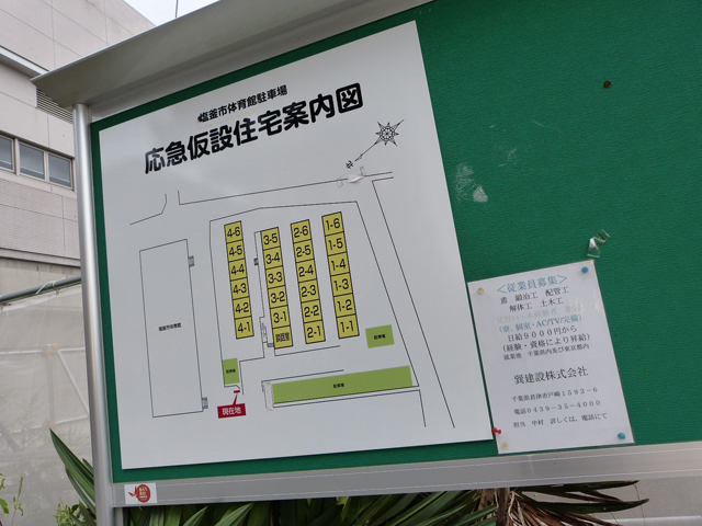 16:40 塩竈市/体育館駐車場応急仮設住宅に到着