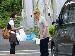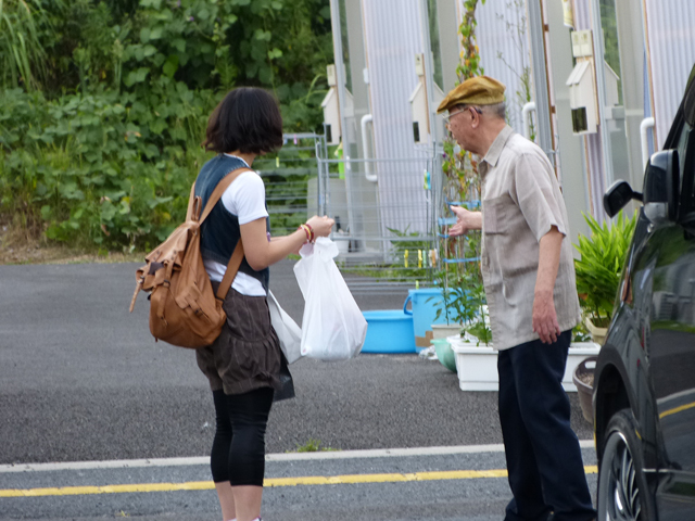 物資を配り始めるが・・・こちらもなんと管理のヒトに断られる。