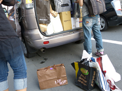 お母サマ(に感謝!!)と一緒に、支援物資を手渡し配布〆