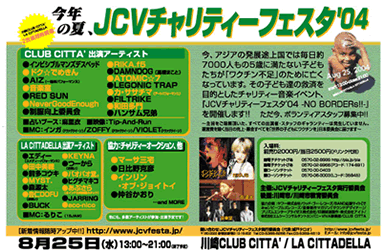 ★EZトップメニュー>エリア>特集>ウォッチングNOW!>JCVチャリティーフェスタ'04